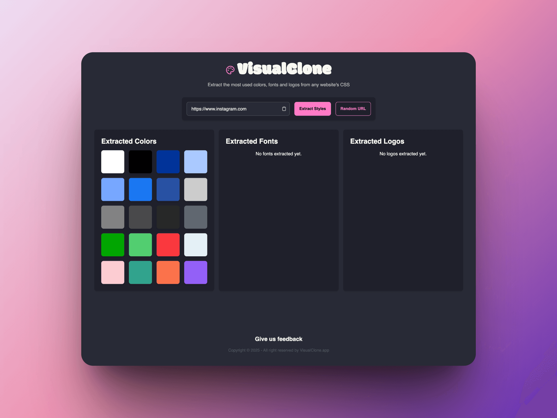 Instantly reveal the design style behind any website: colors, fonts, and logos in one quick look.