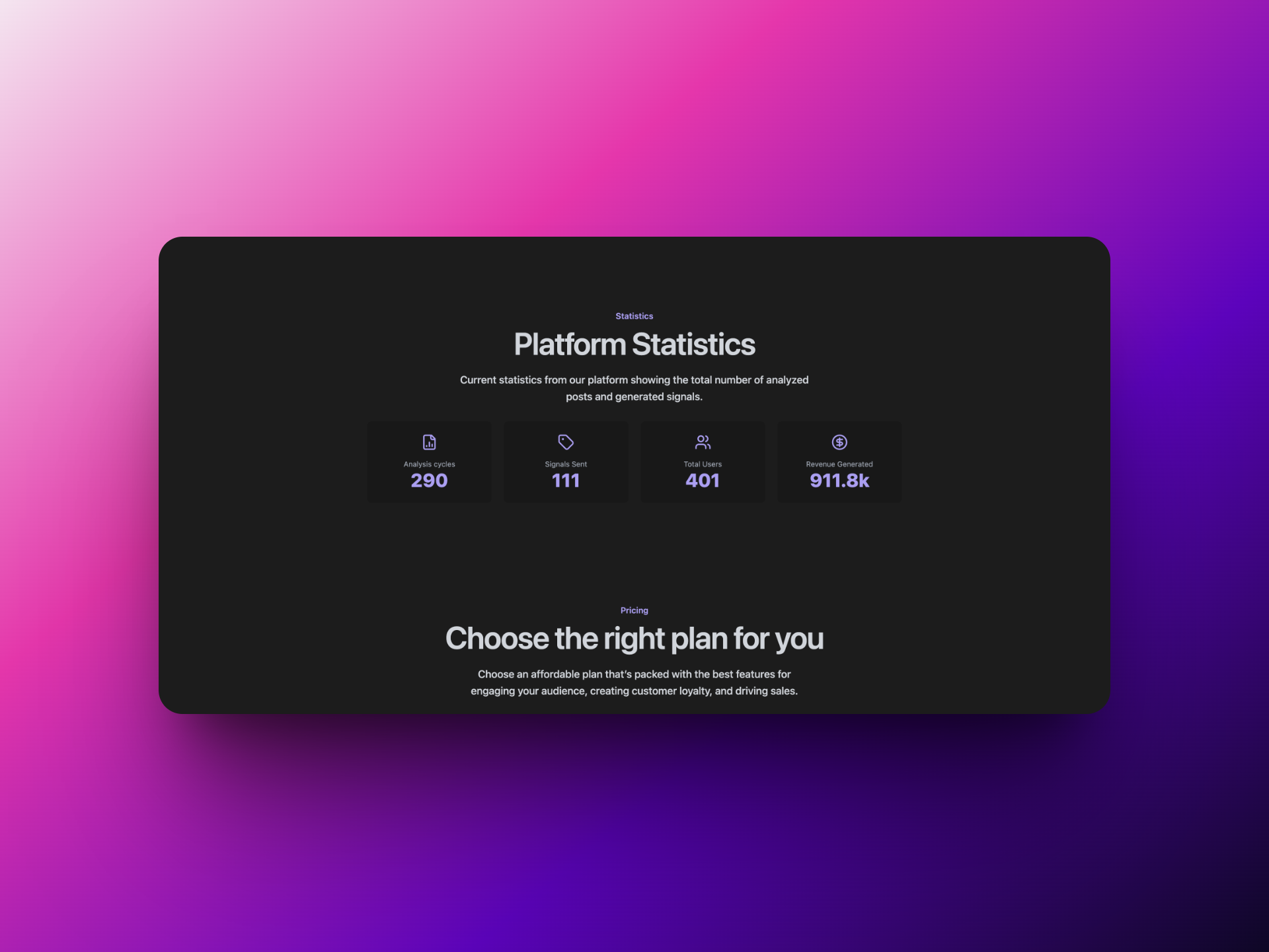 An AI-powered signal platform for memecoins, leveraging advanced analysis to identify and deliver relevant investment opportunities.