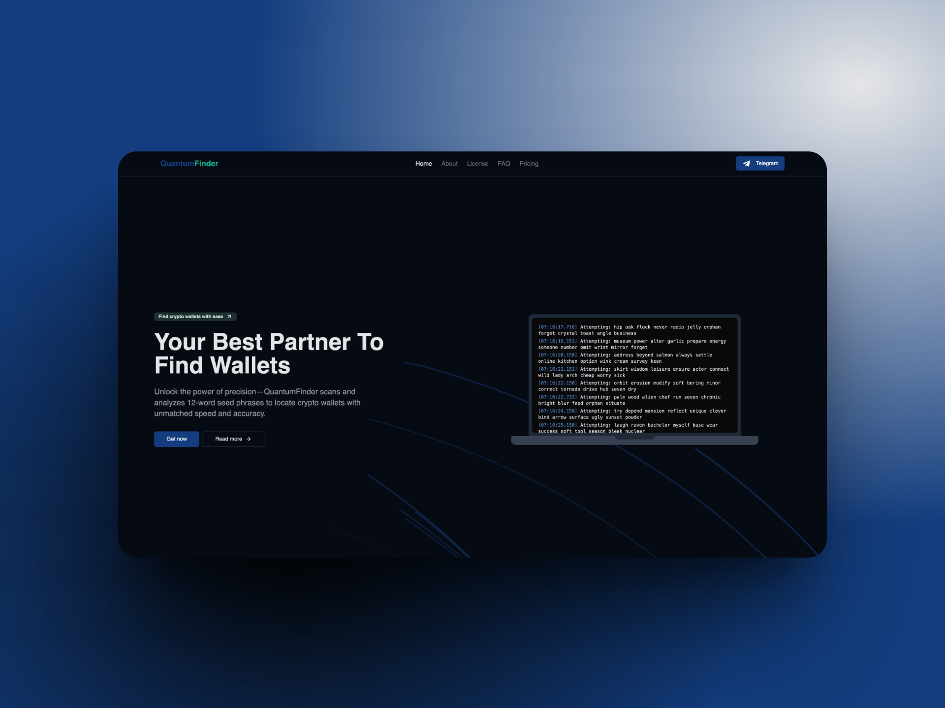 Quantum Finder is a tool designed for exploring and attempting to crack crypto account mnemonic phrases through a user-friendly interface.